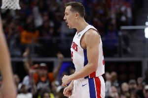 活塞球员邓肯·罗宾逊上半场发挥稳定,作为外线炮台很好地把握空位机会,还能合理策应,有次为康宁汉姆送空接助攻的精彩表现。