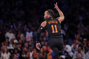 此役尼克斯后卫布伦森火力全开,打了39分钟21投12中,三分6中4、罚球10中9砍全场最高37分外加1篮板5助攻1抢断,正负值+10。