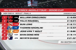 体育资讯11月30日讯 国际滑联短道速滑世巡赛多德雷赫特站,孙龙在男子1500米项目上以2分16秒772的成绩收获铜牌!加拿大选手包揽冠亚军。