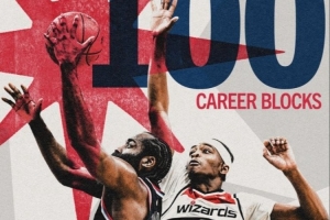 奇才官方发布100帽海报,图片却是库利巴利帽哈登的瞬间。