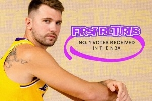 分别是:东契奇(1249518票)第一、詹姆斯(536555票)第九、里夫斯(405379)第十。
