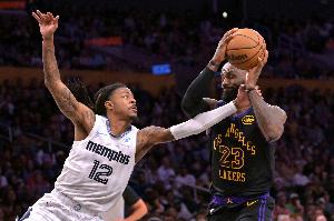 灰熊首次反超湖人后空位三分球六连铁,湖人愿意让科沃德、韦尔斯、GG等侧翼工兵大量出手三分球,只要灰熊双核不杀到篮下就好