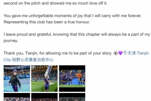 今日阿代米更新个人微博,向天津球迷告别。他写道:
